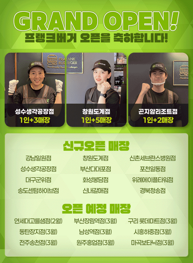 프랭크버거 신규 오픈을 축하합니다!